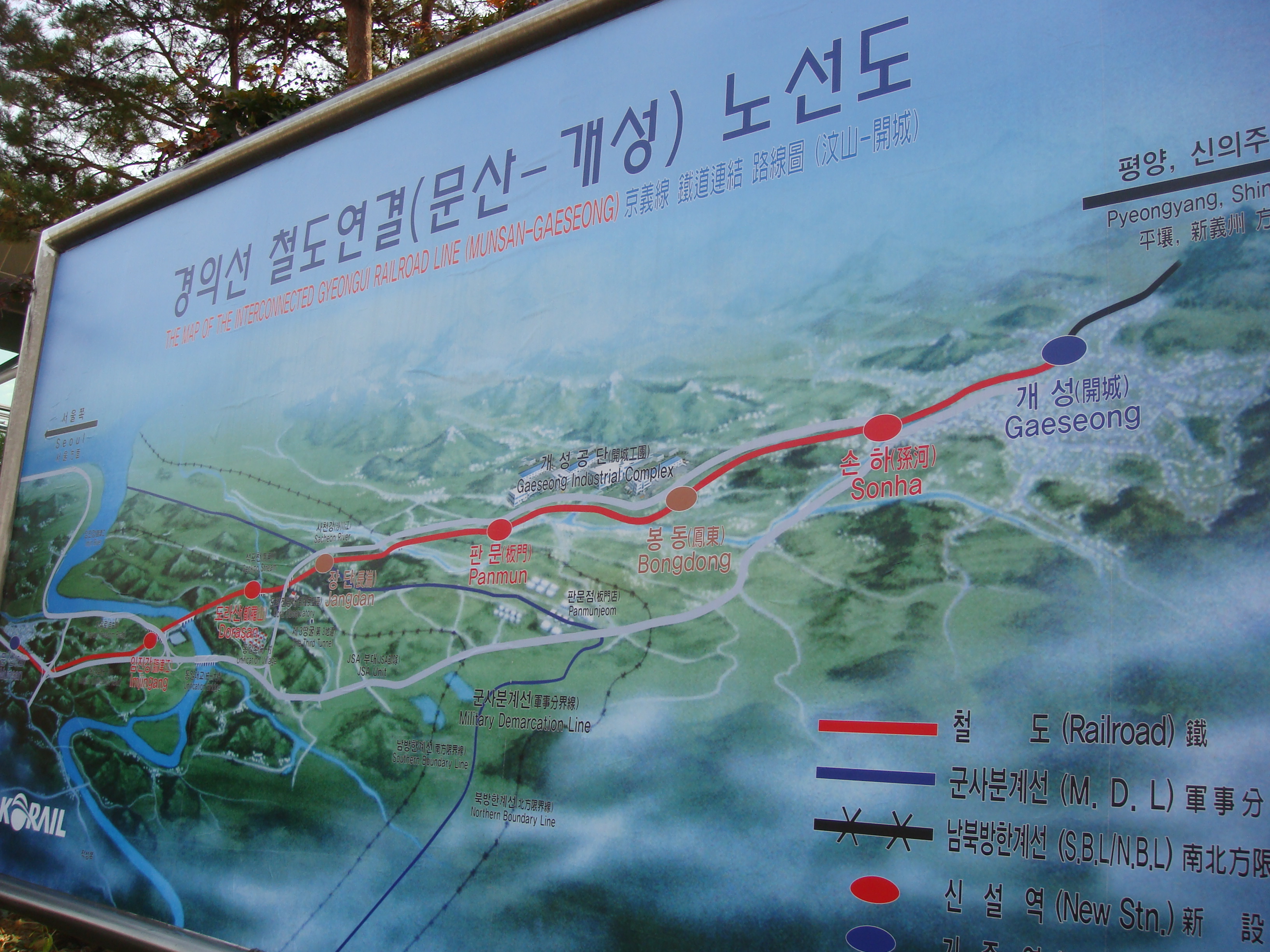 There is genuinely a commuter train: a small number of South Koreans are employed at a North/South venture within the DMZ, on the Northern side of the border. Items such as semiconductors are made there, by Samsung.