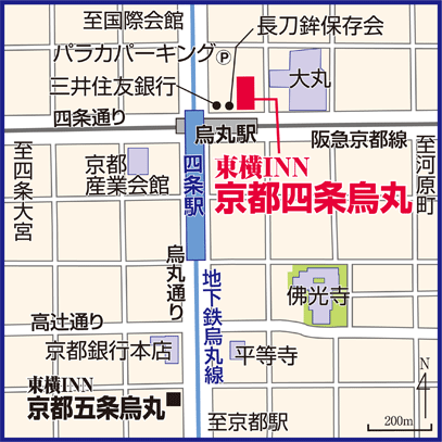 There are only two Subway lines in Kyoto: The Karasuma Line is green on the map; and the Tozai line, which is red.